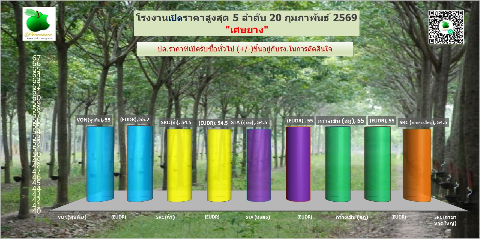 สรุปราคายางแผ่นรม/ดิบ เศษยาง เครฟ โรงงานทั่วไปประจำวัน ศุกร์ ที่ 20 กุมภาพันธ์ 2569