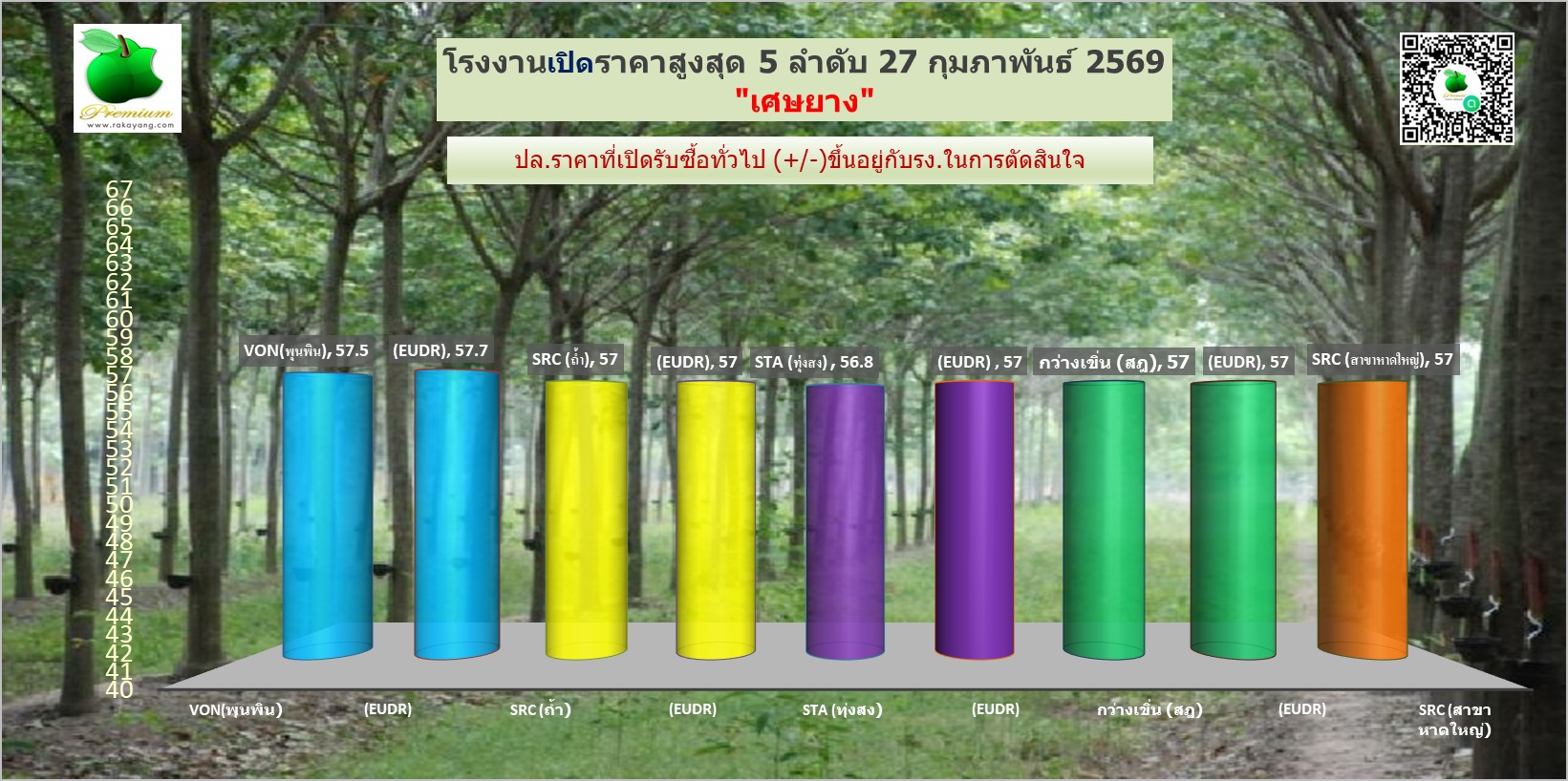 สรุปราคายางแผ่นรม/ดิบ เศษยาง เครฟ โรงงานทั่วไปประจำวัน ศุกร์ ที่ 27  กุมภาพันธ์  2569