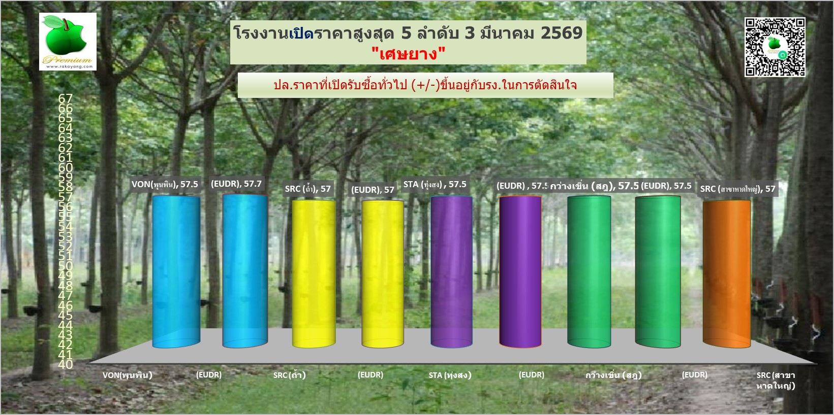 สรุปราคายางแผ่นรม/ดิบ เศษยาง เครฟ โรงงานทั่วไปประจำวัน อังคาร ที่ 3  มีนาคม  2569