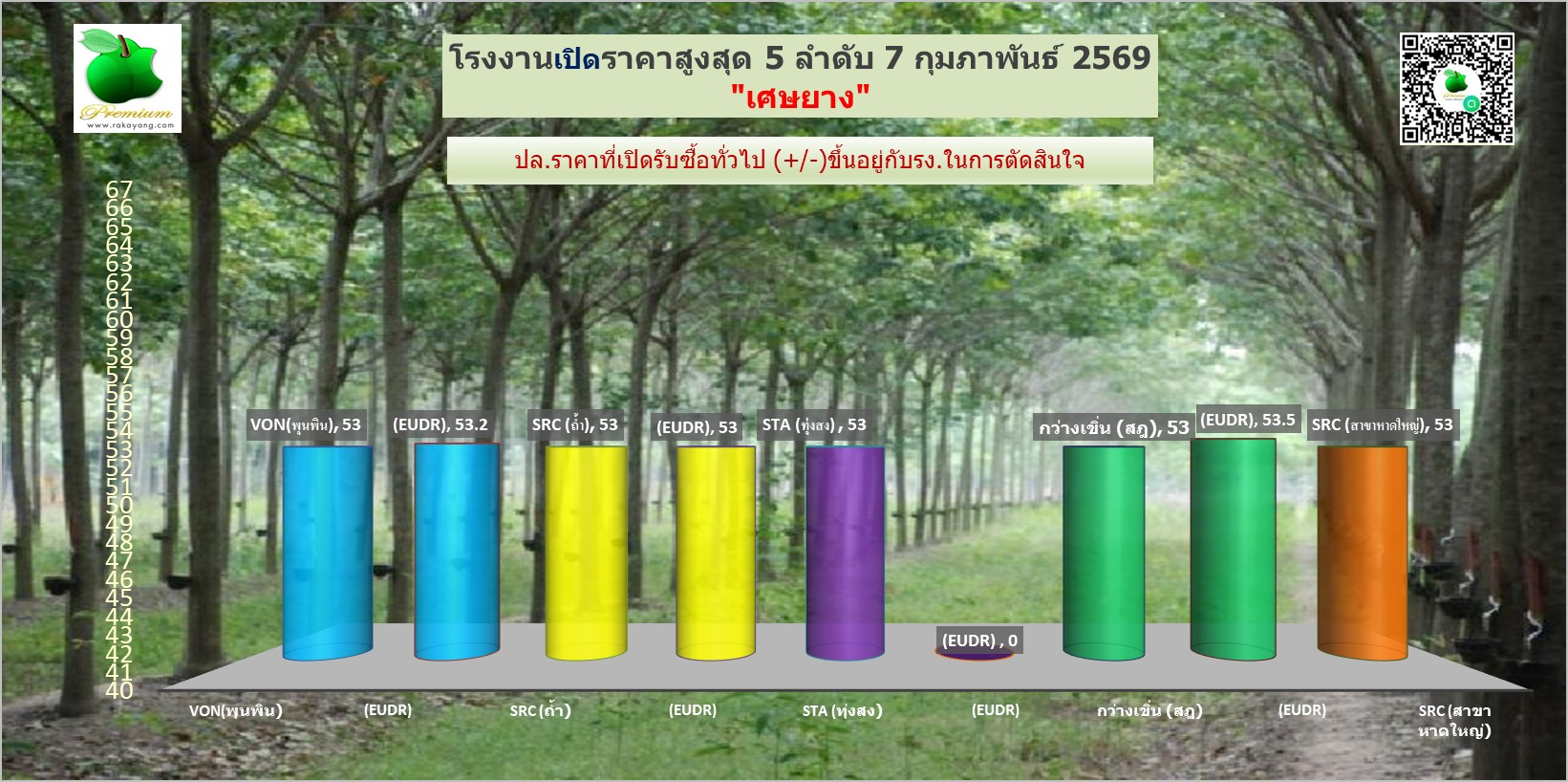 สรุปราคายางแผ่นรม/ดิบ เศษยาง เครฟ โรงงานทั่วไปประจำวัน เสาร์ ที่ 7 กุมภาพันธ์ 2569