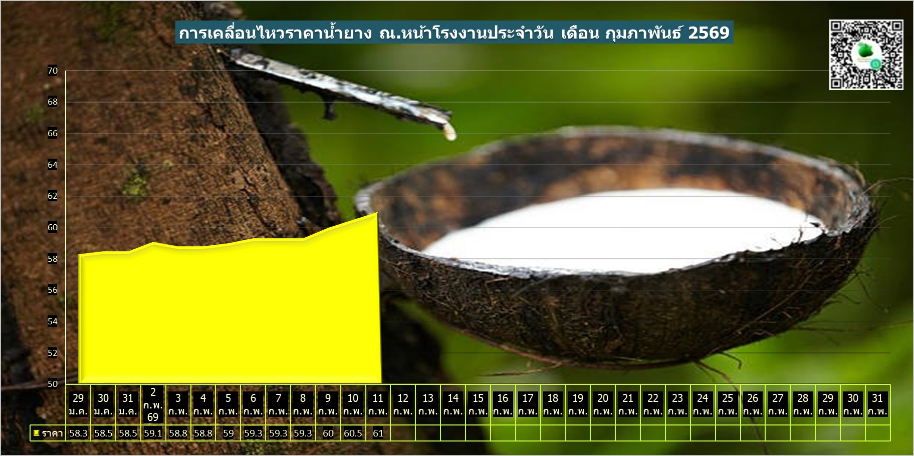 สรุปราคาน้ำยางโรงงานและลานท้องถิ่นทั่วไปประจำวัน พุธ ที่ 11 กุมภาพันธ์ 2569