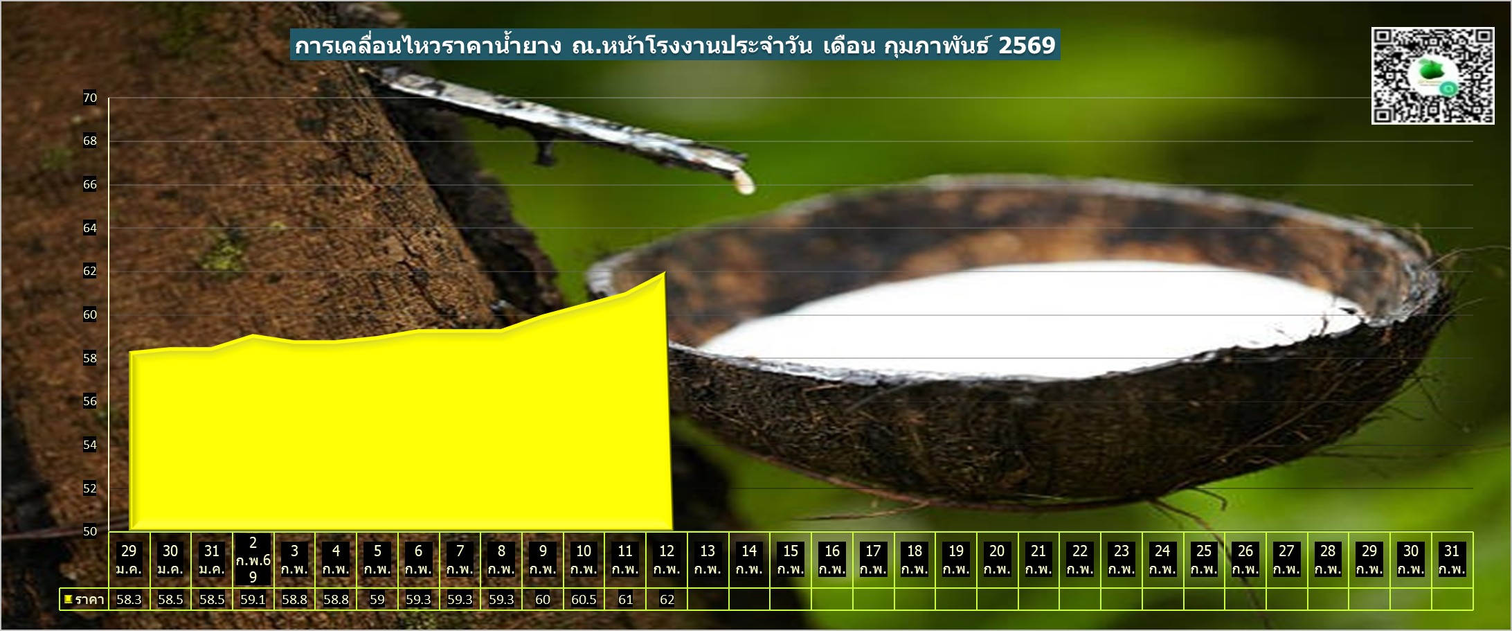 สรุปราคาน้ำยางโรงงานและลานท้องถิ่นทั่วไปประจำวัน พฤหัสฯ ที่ 12 กุมภาพันธ์ 2569