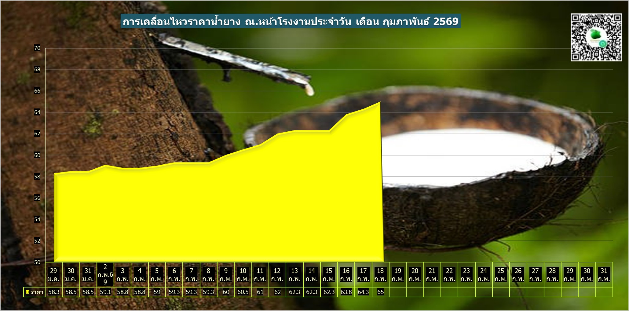 สรุปราคาน้ำยางโรงงานและลานท้องถิ่นทั่วไปประจำวัน พุธ ที่ 18 กุมภาพันธ์ 2569
