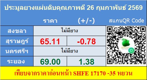 รายละเอียดการประมูลยางแผ่นดิบคุณภาพดี,ชั้น4,ชั้น5 ณ.ตลาดกลางยางพาราประจำวัน พฤหัสฯ ที่ 26 กุมภาพันธ์ 2569