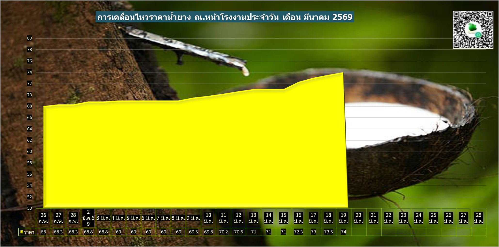 สรุปราคาน้ำยางโรงงานและลานท้องถิ่นทั่วไปประจำวัน พฤหัสฯ ที่ 19 มีนาคม 2569
