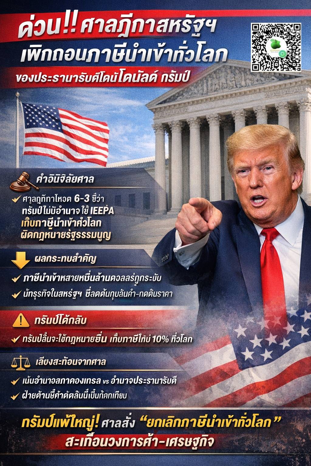 ทั้งนี้ ทรัมป์ลงนามคำสั่งดังกล่าวหลังศาลฎีกาสหรัฐฯ มีมติด้วยคะแนนเสียง 6-3 ประกาศยกเลิกมาตรการภาษีศุลกากรของทรัมป์ในวันศุกร์
