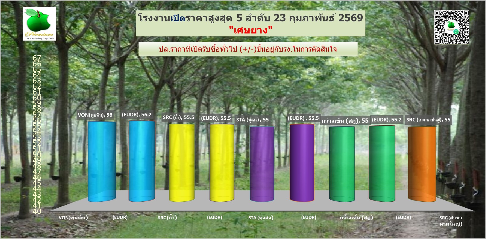 สรุปราคายางแผ่นรม/ดิบ เศษยาง เครฟ โรงงานทั่วปท.ประจำวัน จันทร์ ที่ 23 กุมภาพันธ์ 2569