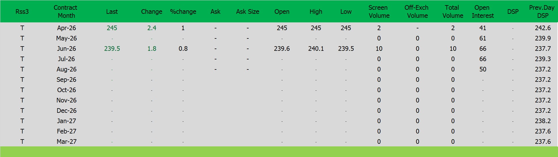 ราคายางRSS3 ตลาดยางSICOM ราคาส่งมอบเดือน เม.ย.ปิดที่245 เซนต์สหรัฐ ราคาเพิ่มขึ้น 2.4 เซนต์สหรัฐหรือ คิดเป็นเปอร์เซนต์ +0.99% %