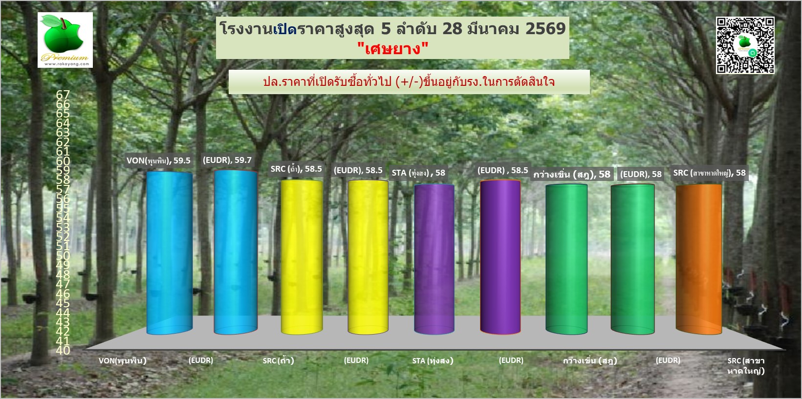 สรุปราคายางแผ่นรม/ดิบ เศษยาง เครฟ โรงงานทั่วไปประจำวัน เสาร์ ที่ 28 มีนาคม 2569