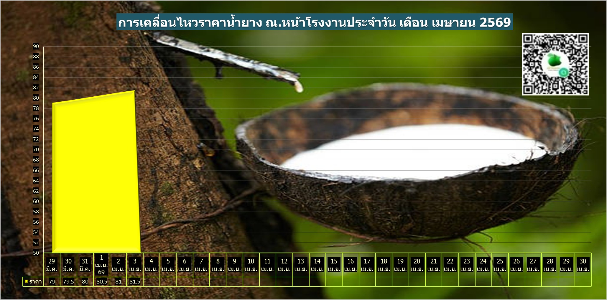 สรุปราคาน้ำยางโรงงานและลานท้องถิ่นทั่วไปประจำวัน ศุกร์ ที่ 3  เมษายน  2569
