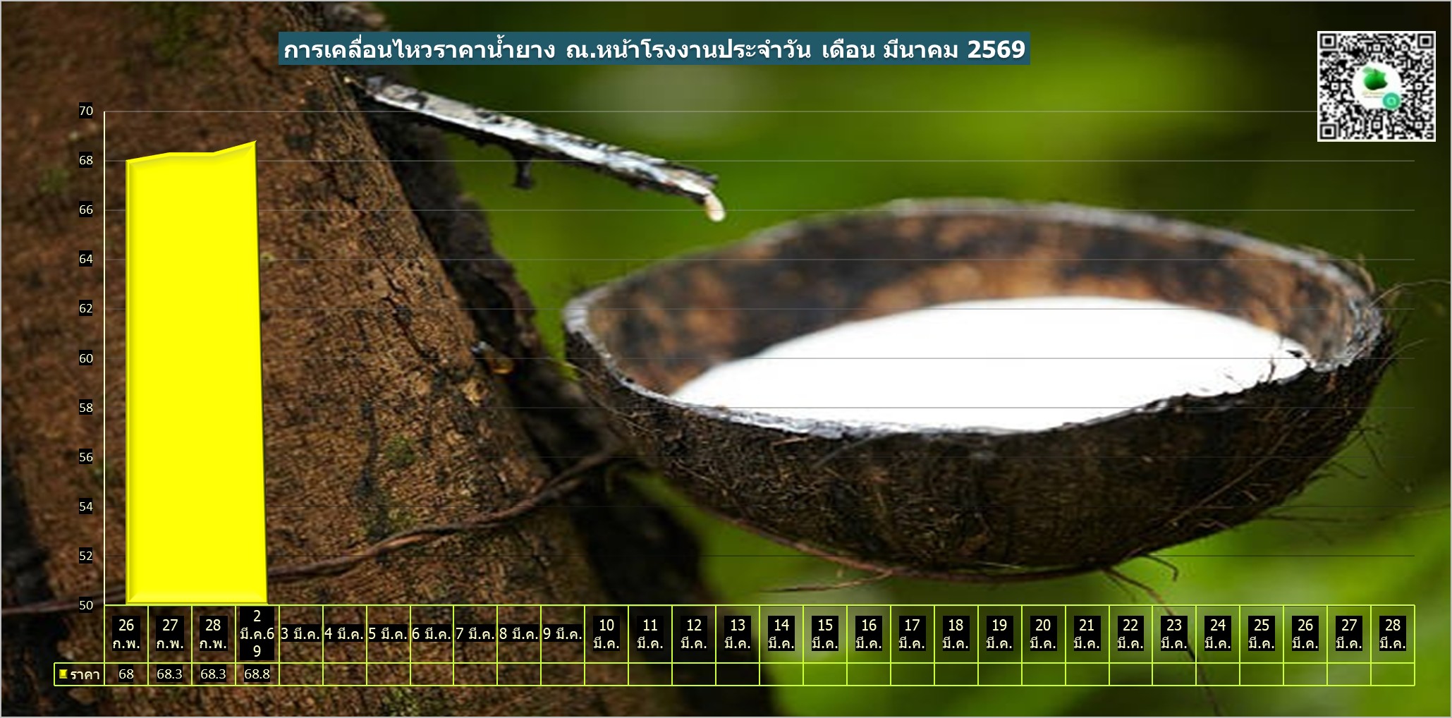 สรุปราคาน้ำยางโรงงานและลานท้องถิ่นทั่วไปประจำวัน จันทร์ ที่ 2 มีนาคม 2569