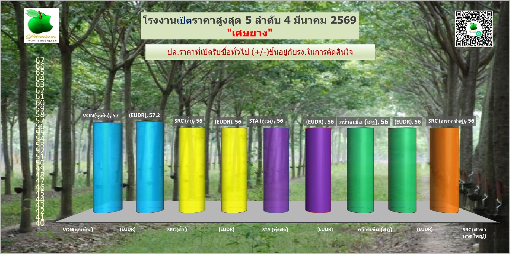 สรุปราคายางแผ่นรม/ดิบ เศษยาง เครฟ โรงงานทั่วไปประจำวัน พุธ ที่ 4 มีนาคม 2569