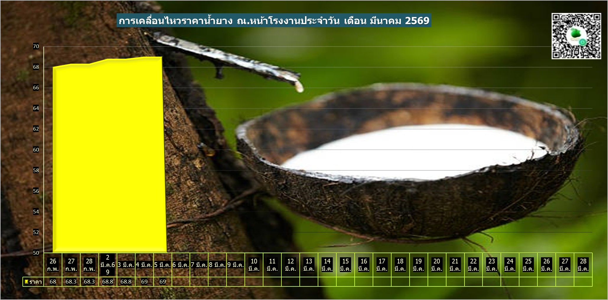 สรุปราคาน้ำยางโรงงานและลานท้องถิ่นทั่วไปประจำวัน พฤหัสฯ ที่ 5 มีนาคม 2569