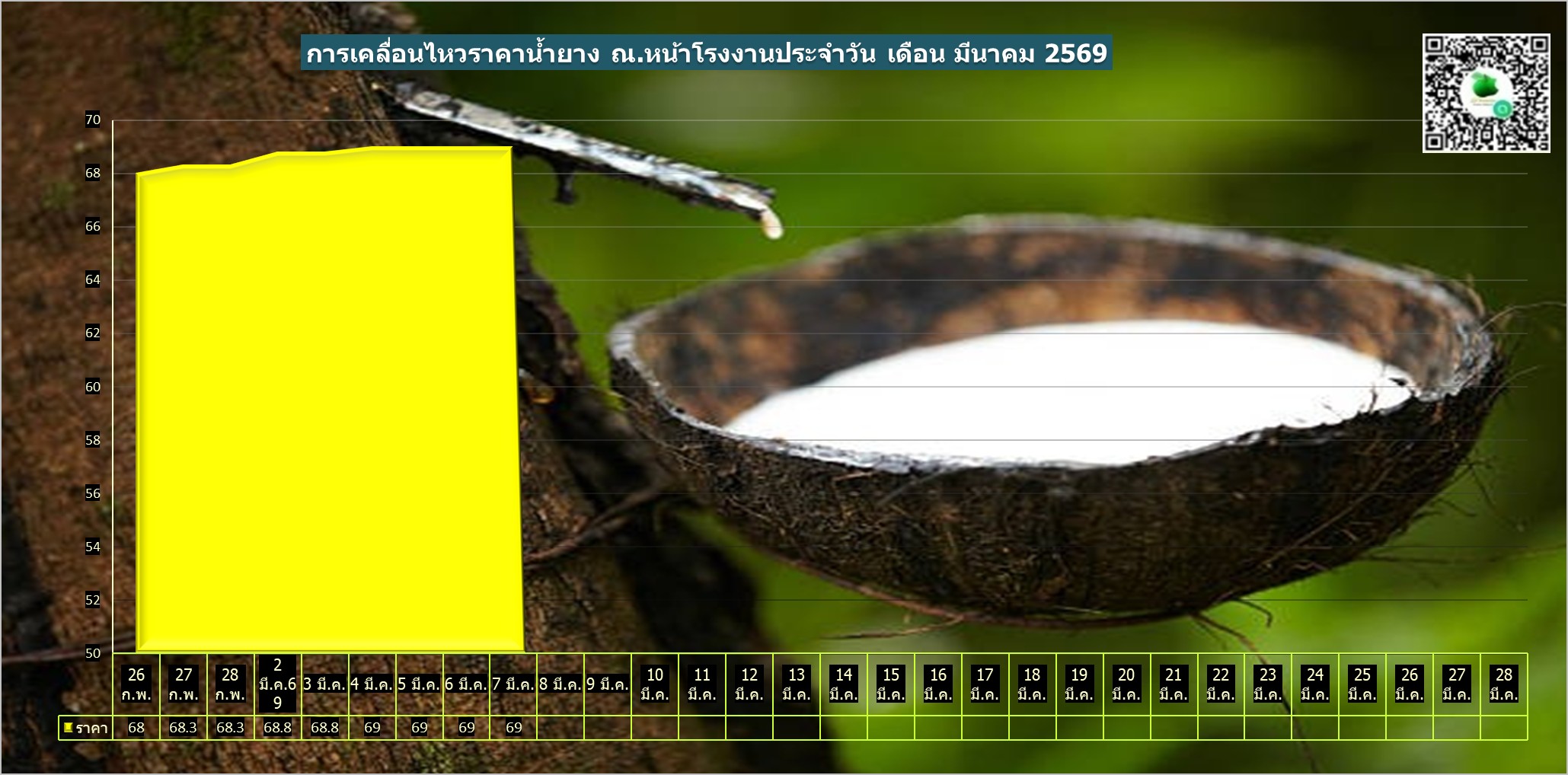 สรุปราคาน้ำยางโรงงานและลานท้องถิ่นทั่วไปประจำวัน เสาร์ ที่ 7 มีนาคม 2569