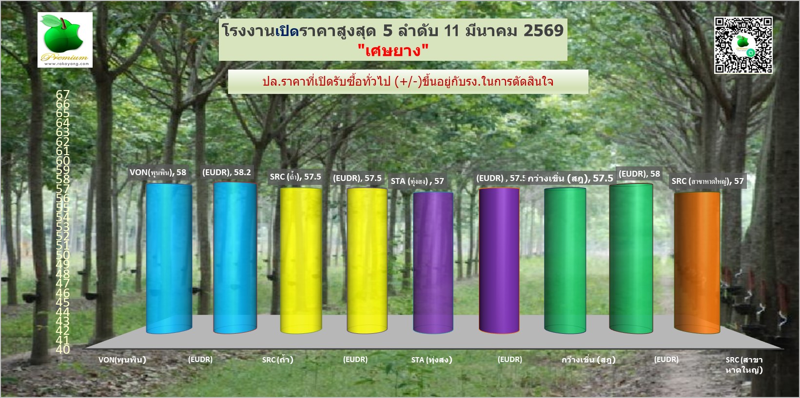 สรุปราคายางแผ่นรม/ดิบ เศษยาง เครฟ โรงงานทั่วไปประจำวัน พุธ ที่ 11 มีนาคม 2569