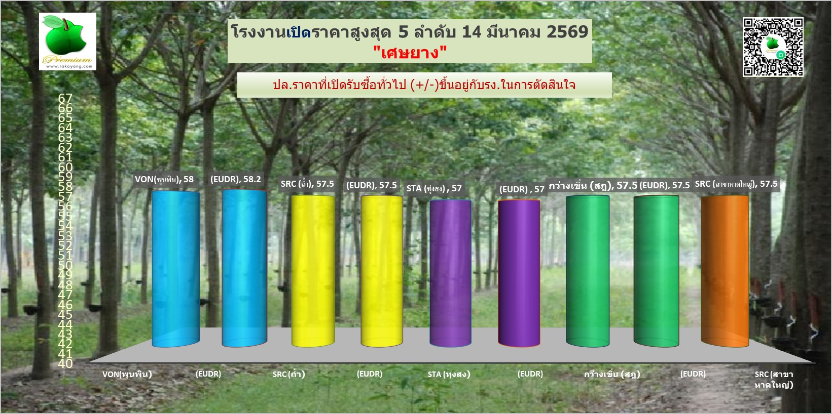 สรุปราคายางแผ่นรม/ดิบ เศษยาง เครฟ โรงงานทั่วไปประจำวัน เสาร์ ที่ 14 มีนาคม 2569