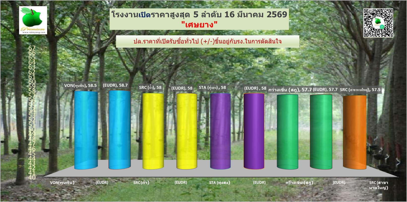 สรุปราคายางแผ่นรม/ดิบ เศษยาง เครฟ โรงงานทั่วไปประจำวัน จันทร์ ที่ 16 มีนาคม 2569