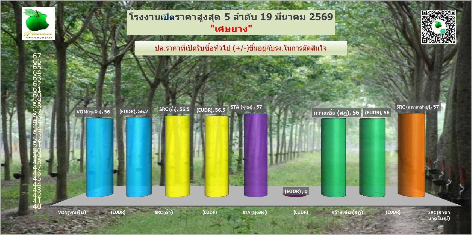 สรุปราคายางแผ่นรม/ดิบ เศษยาง เครฟ โรงงานทั่วไปประจำวัน พฤหัสฯ ที่ 19 มีนาคม 2569